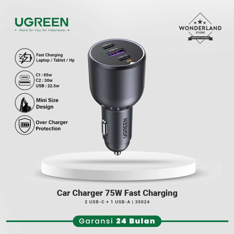 Ugreen Car Charger 75W (hanya car charger, tidak termasuk kabel)