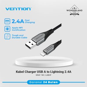 Vention Kabel USB to Lightning MFI Certified 2.4A Fast Charging Aluminium Alloy LAB LAF – Grey Nylon 1M