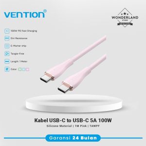 Vention Kabel Data USB-C to USB-C 5A 100W SFC PD PPS Nylon Braided / Silicone – CTK TAW – 1M SiliconePink